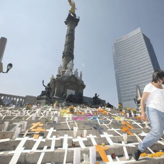 El monumento ubicado en Paseo de la Reforma fue repleto de cruces y veladoras, que fueron colocadas desde la noche del lunes.