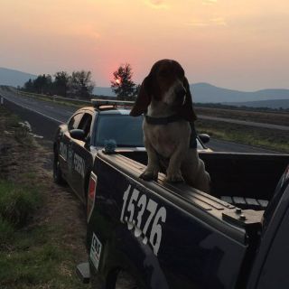 La PF publicó dos fotos del canino a bordo de la unidad con número 15376 de la Comisión Nacional de Seguridad (CNS).