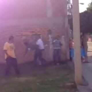 En el video se ve que el joven que grababa arrinconado en una barda y seguido por un elemento hacia un terreno baldío en el que le propina dos puñetazos en el rostro y lo derriba.