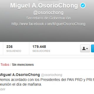 "Hemos acordado con los presidentes del PAN, PRD y PRI tener una reunión el día de mañana", escribió Osorio Chong en la red social.
