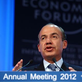 En un breve discurso, el profesor Schwab recordó que, en 1997, Calderón fue elegido como Líder Mundial del Futuro (World Leader of the Future), y destacó que, "en poco tiempo, el jefe del Ejecutivo mexicano se ha convertido en un líder de los tiempos actuales".