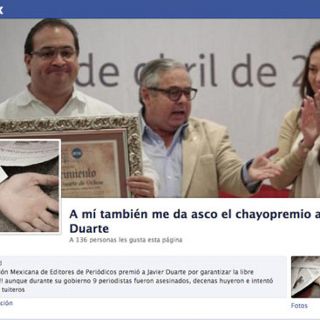 En Facebook, un colectivo creó la cuenta “A mí también me da asco el chayopremio a Javier Duarte”, que desde esta mañana ha atraído ya a decenas de seguidores. Mientras, en Twitter, el hashtag #Chayopremio se está utilizado para criticar al mandatario de Veracruz.