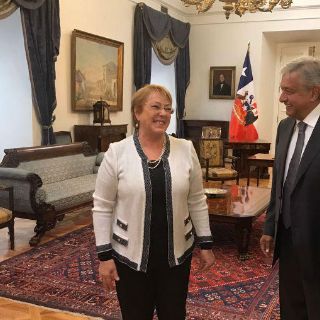 CIUDAD DE MÉXICO (01/AGO/2017).- La presidenta de Chile, Michelle Bachelet, y el líder nacional de Morena, Andrés Manuel López Obrador, se reunieron esta tarde en el Palacio de La Moneda, en Santiago, Chile.