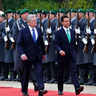 Joachim Gauck y el mandatario mexicano, luego de posar para los medios, pasaron revista a las tropas tras escuchar los himnos nacionales de los dos países