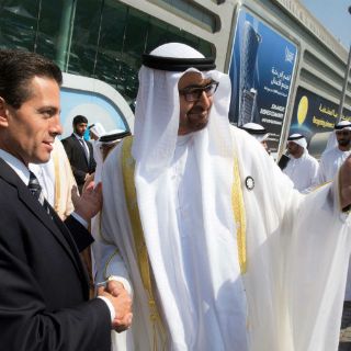ABU DHABI, EMIRATOS ÁRABES UNIDOS (18/ENE/2016).- En un gesto inusual con un mandatario, el príncipe heredero de Abu Dhabi, Mohammed Bin Zayed Al Nahyan rompió el protocolo de la visita del Presidente