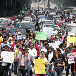 Ellos protestaban en contra del nuevo programa Hoy No Circula sabatino, anunciado por el Gobierno de Miguel Ángel Mancera Espinosa, con en el que se pretende que los vehículos con más de 15 años de antigüedad dejen de circular todos los sábados y un día entre semana.