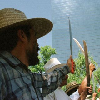 CIUDAD DE MÉXICO (15/ABR/2015).- Con machete en mano, integrantes Frente de los Pueblos en Defensa de la Tierra de San Salvador Atenco protestaron al interior del Senado de República, por la construcción en el municipio de Texcoco, del Nuevo Aeropuerto de la Ciudad de México (NACM).