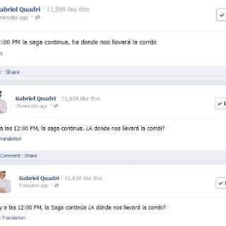 Al filo de las 11 de la mañana, en la página de Facebook de Quadri de la Torre ( https://www.facebook.com/GabrielQuadri) apareció un mensaje que sería la antesala al inicio de sus actividades del día.