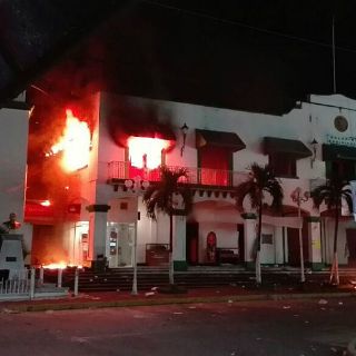 Sin embargo, durante la noche decidieron también prenderle fuego al Palacio Municipal para exigir la aparición con vida del cura y activista social, José Luis Sánchez Ruiz, el cual –según testigos- fue sacado de su domicilio por hombres vestidos de policías.