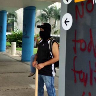 A partir del medio día, desde que acordaron la toma simbólica con las autoridades, los normalistas, la mayoría cubiertos del rostro y con palos y tubos en las manos, impiden el acceso de viajeros al aeropuerto internacional, y les explican que esta acción "contundente" se debe a que están desesperados y hartos de tanto sufrimiento, expresó un padre de familia.