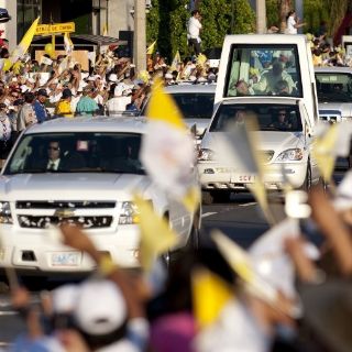 Benedicto XVI realiza un recorrido en Papamóvil, del Aeropuerto Internacional del Bajío al Colegio Miraflores