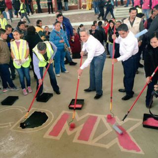 El mandatario capitalino encabezó las labores de pintura y rehabilitación del Jardín de La Paz, el Ágora y la colocación de "Mulch", que es una cubierta natural que se aplica a camellones, jardines y parques para conservar la humedad del suelo.