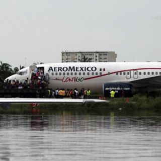En punto de las 14:30 despegó del Aeropuerto Internacional de Acapulco un avión de Interjet repleto de turistas varados aquí por la tormenta "Manuel".