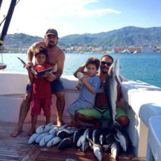 Badillo publicó fotografías en Facebook donde se le ve con varios ejemplares de tiburón juvenil; en las imágenes también aparecen sus dos hijos.