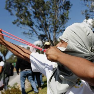 Mientras la gente se defendía con piedras, los militares y policías federales utilizaban sus escudos y toletes.
