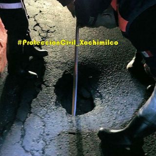 A través de su cuenta de Facebook, la delegación Xochimilco informó que el hundimiento de 70 centímetros de diámetro se presentó en la vialidad en el tramo entre Desiderio Peña y Cocoxochitl.