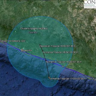 Según la Conagua, el meteoro se localiza aproximadamente a 140 km al sureste de Acapulco y 55 km suroeste de Punta Maldonado, Guerrero. La tormenta presenta vientos máximos sostenidos de 65 km/h con rachas de 85 km/h y se desplaza hacia el norte a 7 km/h.