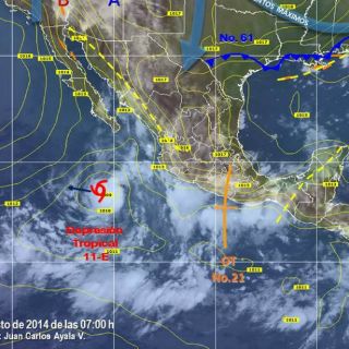 CIUDAD DE MÉXICO (13/AGO/2014).- La Comisión Nacional del Agua (Conagua) informó que la depresión tropical 11-E evolucionó esta mañana de miércoles a la tormenta tropical "Karina" en el Océano Pacífico.