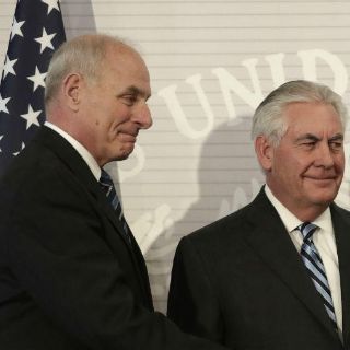 CIUDAD DE MÉXICO (23/FEB/2017).- En punto de las 14:20 horas, los secretarios de Estado y de Seguridad Nacional de Estados Unidos, Rex Tillerson y John Kelly, ingresaron a la Residencia Oficial de Los Pinos, donde fueron recibidos por el Presidente Enrique Peña.