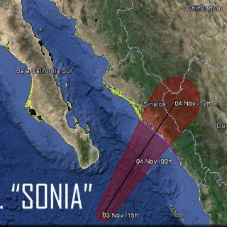 Conagua) informó que la tormenta tropical "Sonia" podría tocar tierra durante las primeras horas de este lunes en la zona costera entre las comunidades de La Cruz y Altata,