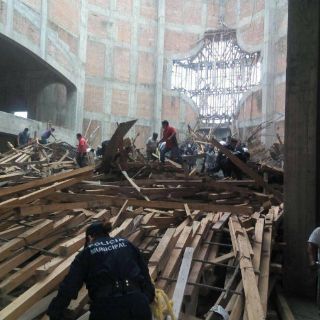 La tarde de ayer se registra el derrumbe de la cimbra del techo mientras trabajadores realizaban labores en la parte alta de la estructura
