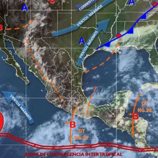 Por otra parte, refirió que en las próximas horas un canal de baja presión en el sureste de México originará tormentas muy fuertes en zonas de Oaxaca, Chiapas, Veracruz, Campeche y Quintana Roo, así como tormentas fuertes en áreas de Tabasco y Yucatán.