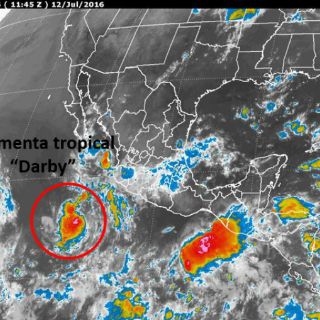 CIUDAD DE MÉXICO (12/JUL/2016).- La depresión tropical 5-E evolucionó esta mañana de martes a la tormenta tropical "Darby" en aguas del Océano Pacífico, informó el Servicio Meteorológico Nacional