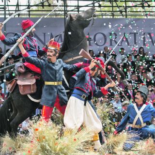 PUEBLA (06/MAY/2012).- Fue la batalla de siempre. Como en los partidos de futbol, el resultado no cambia por más que se vea la repetición. La diferencia es que no fueron 11 jugadores: al menos 10 mil soldados participaron en la escenificación de la Batalla de Puebla, ese capítulo de la historia oficial que tanto se ha catalogado como heroico y que cumplió 150 años.