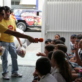En las escuelas los chicos pueden aportar de manera voluntaria en las alcancías especiales de Nariz Roja y como recuerdo se llevan una nariz, símbolo de que son agentes de cambio.