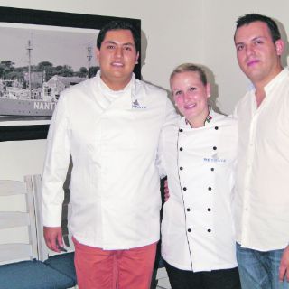 GUADALAJARA, JALISCO (13/SEP/2012).- Alejandra Solbes, Raúl Carrasco y Marcos Sánchez, propietarios del nuevo restaurante Rey Raya, especializado en cocina del mar, dieron la bienvenida a sus invitados con un coctel inaugural. El lugar combina a la perfección con el estilo arquitectónico de Nantucket, península ubicada en la costa Este de Estados Unidos, idea del padrino de la noche, Edgar Ruezga.