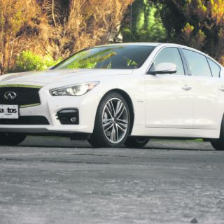 El Q50 es un sedán mediano de tracción trasera. Incorpora un motor V6 de 3.5 litros y un eléctrico que en suma aportan 360 caballos, pero con un beneficio en el consumo de combustible. En nuestra prueba, logramos cifras de casi 14 km/litro en rendimiento combinado. Tiene una caja automática de siete marchas con control de cambios adaptativo.