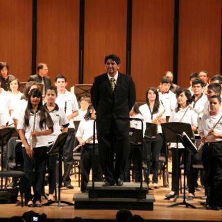 La velada arrancó con la pieza Zarathustra, en la interpretación de la banda de marcha. EL espectáculo siguió con la orquesta infantil que interpretó temas como La llorona y Cielito lindo, a la que siguió la orquesta juvenil que levantó el ánimo con del Danzón no.2.
