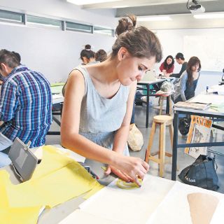 GUADALAJARA, JALISCO (28/MAR/2011).- En los talleres los estudiantes dejan volar su imaginación y en su espacio de trabajo fluye la personalidad que se une a los fundamentos adquiridos con la preparación académica. Las texturas y trazos surgen para dar paso a nuevas creaciones y a los futuros licenciados en Diseño de Modas.