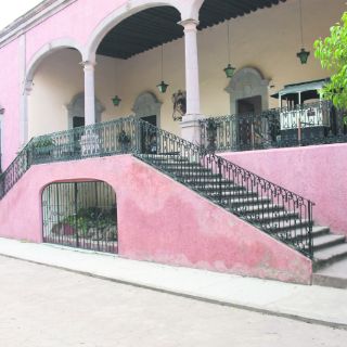 Casi enfrente del portal, observamos la casa grande, que fue levantada sobre un alto cimiento para sobresalir su belleza, dos anchas escaleras suben al atractivo pórtico, que ostenta tres altos arcos escarzanos, soportados por capiteles dóricos y columnas redondas, a los costados, dos románticos balcones con cornisa circular, que miran a las frondas de la fabulosa huerta.