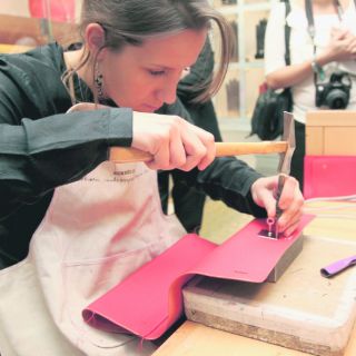 La artesana tenía una misión: confeccionar un bolso de estilo Kelly al público que durante cuatro días disfrutó del trabajo manual de la francesa, quien por azahares del destino hizo pausa en su gusto por la equitación para convertirse en una de los dos mil artesanas exclusivas de Hermès.