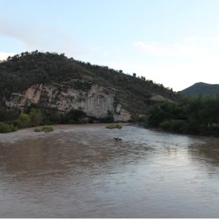 Subimos emocionados aquel puente colgante, que nos fue brindando encantadores paisajes, río arriba, exuberantes frondas enmarcaban el ancho lecho marrón, enseguida peñascos inclinados, como queriéndose tocar y a lo lejos, los cerro, El Manzanillo y El Chivo. Río abajo, el cauce acariciaba un atractivo paredón blanco, arriba, plantas, que subían a la cumbre, un tanto curveada. Un campesino atravesaba el río montado a caballo, el agua cubría su panza, observamos cómo fue cruzando lerdamente la ancha y bella corriente de agua, se veía diminuto en ese caudal. Nos quedamos en el puente de Mamatla hasta que la oscuridad reino.