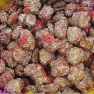En el mercado publico municipal 20 de Noviembre, en la entrada principal está el puesto de doña Teresa de Jesús González, en cuyo local oferta una gran variedad de dulces y por el color rojo resalta el de nuégado.