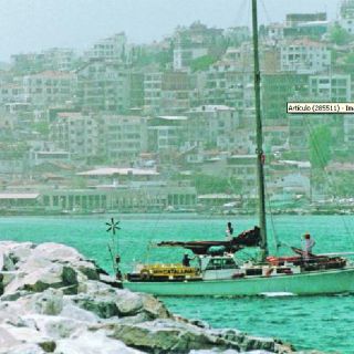En esta nueva foto sí aparece el barco “Catalunya” (Sea Yatch) entrando al puerto de Ismir en Turquía, con sus velas marrón y la familia Du Plessis como tripulación; a quienes con enorme gusto esperábamos en el muelle, con bebidas y botanas, trepados en el “On Toy”, nuestro (Land Yatch), para celebrar su regreso de alguna isla griega cercana, a donde habían tenido que ir para sellar sus pasaportes y así comprobar ante las autoridades turcas, que no habían estado más de tres días en su país, debido al mismo rechazo al apartheid infame (por fortuna esta política ya fue abolida).