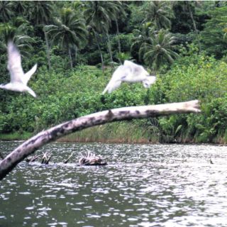 Al día siguiente abordamos una lancha, que entró por la desembocadura del paradisiaco río “El Faaroa”, nos adentramos contemplando la densa y variada vegetación, mangles, tules, palmeras, casuarinas, camichines y primaveras. A nuestro paso, diversas aves volaban por doquier. Raiatea ostenta una peculiar flor, endémica e insignia de la isla, la tiare apetahi, es una gardenia, blanca y de cinco pétalos. Nuestra guía era un primor de isleña, con un sombrero tapizado de flores, un grueso collar de flores, un vestido azul zafiro y un humor sumamente alegre, nos contagiaba con su agradable sonrisa de sus comentarios que se le ocurrían, lloramos de risa, nos quedamos con ganas de adoptarla, al mirarla en unas fotografías con su peculiar sonreír, sonrío nuevamente. Enseguida fuimos a bucear con visor y tubo al fantástico Hotel Balí Hai, sobre pilotes en la laguna. Más tarde caminamos por el puerto, donde apreciamos algunas artesanías.