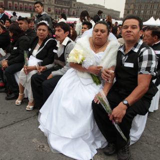 matrimonio esta mañana en la boda colectiva que el Gobierno del Distrito Federal (GDF) organizó en la explanada del Zócalo.