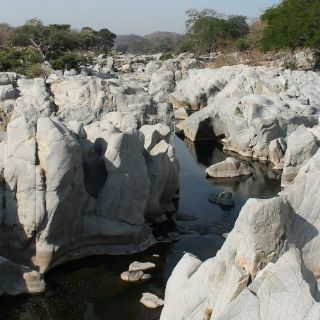 Pasando el puente, entramos al cautivador municipio de Cuautitlán, pasamos por Seguaya y luego seguimos el sendero de Chacala, “río de los camarones”, a corta distancia fuimos sorprendidos por el precioso Río Cuzalapa, que en la región que pisábamos se le llama también Chacala. Una gran peña blanca ha sido labrada por el río, que zigzagueaba la escarpada peña con gracia, contrastando fabulosamente con aquel páramo rocoso, ¡algo insólito! Seguimos la brecha a Cuzalapa, que fue bordeando el río y regalándonos atractivos parajes. Antes de El Chico, nos detuvimos sobre la cima de una loma a admirarlo, serpenteaba sigiloso entre playas y laderas rocosas, atrás de unos sauces formaba una bizarra isla. Más adelante lo apreciamos a través de una higuera, una primavera florida y una parota, follajes que embellecían el cordón de agua. Enseguida vimos el camino a Las Marías, pasamos por Los Terreros, Tejones y El Limoncito. En Patitas nos detuvimos a mirar una primavera que se reflejaba en el río, a corta distancia vimos unas garzas a la vera de un estanque. Cerca de lagunillas se le suma el Río Patita, y pasando el referido poblado nos detuvimos en un extraordinario remanso, sombreado por gruesos árboles, nos sentamos plácidamente sobre una piedra a contemplarlo y después sentimos la fresca agua en nuestras manos y cara.