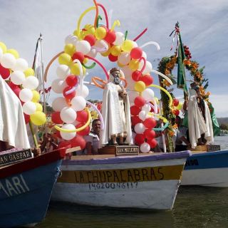 Las capas de tela reflejan los rayos del Sol, con colores llamativos durante la procesión. Y aunque la celebración da inicio desde el 27 de diciembre, los artesanos locales se adelantan a los turistas que prefieren visitar el lugar antes de toparse con el conglomerado de gente, para ofrecer las figuras de cerámica, madera y barro de los tres reyes. Las calles infestadas de flores y globos son el escenario perfecto para los recuerdos fotográficos, al igual que en el interior del sagrado lugar donde al final del recorrido religioso los reyes detienen su andar, después de atravesar la laguna a bordo de una lancha decorada, para celebrar la tradicional misa.