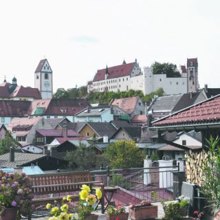 El castillo está en lo alto de las montañas que rodean al poblado de Füssen, un lugar pequeño que se caracteriza por las pintorescas paredes de varios de sus edificios. El estilo de estas imágenes es el Lüftlmalerei, un tipo de pintura que floreció hace aproximadamente un siglo y que reflejaba en las fachadas de las casas o negocios a sus habitantes o al giro que tenía el lugar.