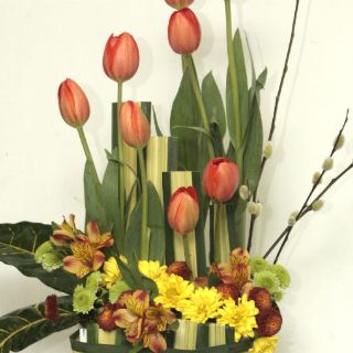 Es una arreglo que, como su nombre lo dice, toma su base en la flor de tulipán color naranja. Se decora con musgo, follaje fino y sobre una estructura blanca de madera a manera de cubo.