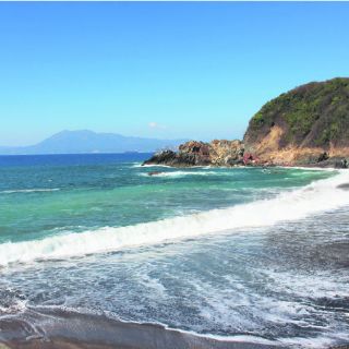 Del malecón bajamos a la cautivadora playa. La recorrimos pausadamente, sintiendo su fina arena, un tanto morena, mirando su fuerte oleaje y su bonito morro, de forma piramidal, elemento que frenaba algo la fuerza del oleaje, a lo lejos las bahías: Cenicero, Santiago, y parte de la bahía Manzanillo. Tomamos valor y le entramos a la ola, por debajo, rebasándola, nadamos un rato en sus frescas aguas, salimos con la ola o mejor dicho la ola nos sacó.