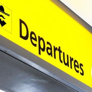 Dicha imagen muestra un letrero que podría ser de una terminal aérea con un ícono de la figura de un hombre de sombrero, figura y zarape.