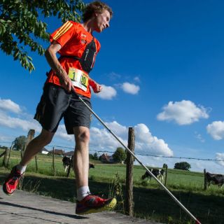 QUATZENHEIM, FRANCIA (14/JUN/2015).- Un joven atleta casi ciego fue el primero en el mundo en completar un trail (una carrera de montaña) de 26 kilómetros sin más ayuda que su bastón y un innovador sistema de geolocalización (