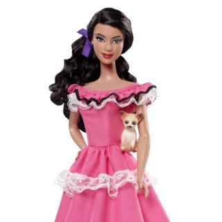 En la página de ventas de estas figuras (www.barbiecollector.com) se puede encontrar una descripción de la muñeca modelo mexicano: ''¡Hola! Bienvenidos a México. Inspirada en los tradicionales mariachis y marimbas, la muñeca Barbie Mexicana está lista para la fiesta!. La muñeca viste un vestido en rosa brillante con listones coloridos. Incluye pasaporte, estampas, un Chihuahua y un cepillo.''