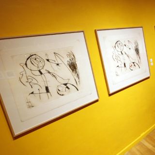 De las obras más tempranas de esta colección -todavía de la etapa surrealista del artista- figuran cinco grabados en blanco y negro de los años 1933 a 1938, así como otros aguafuertes de los años 40, del primer viaje de Miró a Nueva York.