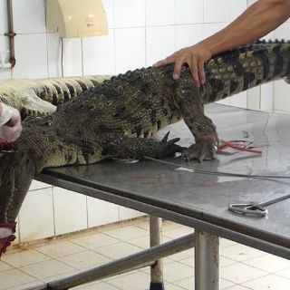 A través de un duro video, la organización mostró situaciones en las que los trabajadores de una de esas instalaciones abren la cabeza de los cocodrilos mientras aún están vivos. Después, los matan al clavarles una vara de metal por el orificio para atravesar el cuerpo a través de la espina dorsal.